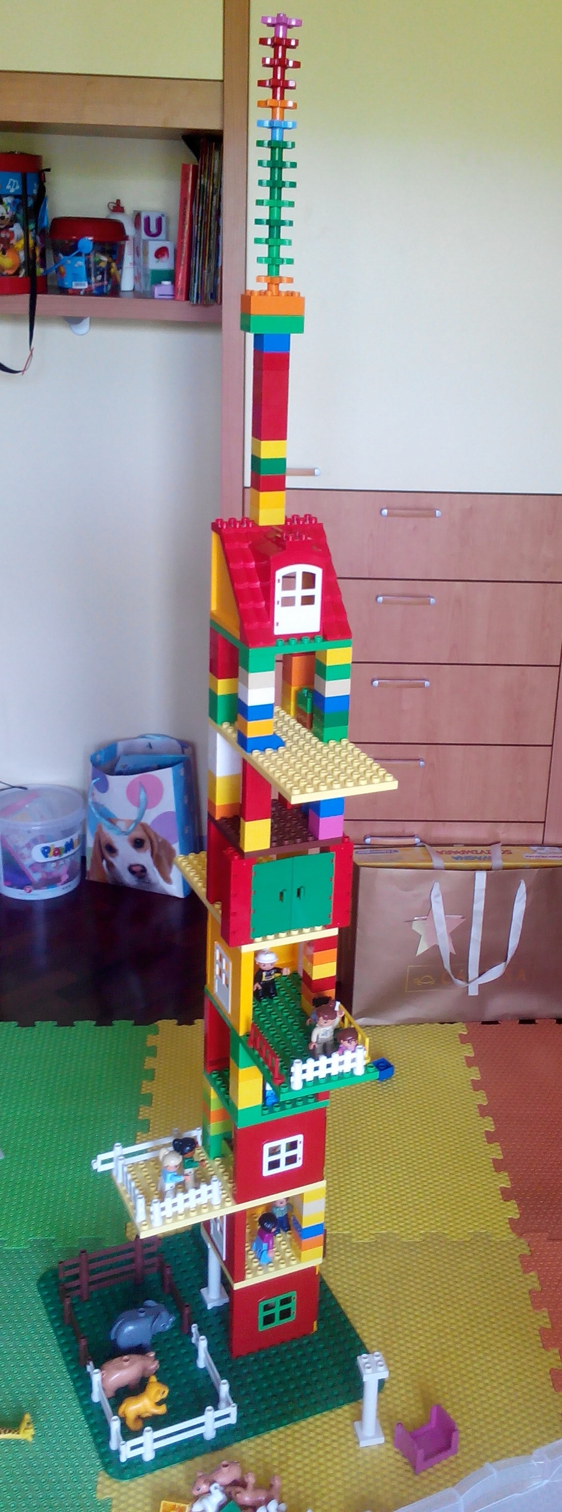 The second also play with her bigger sister because both likes to invent the story but when they are alone, because one is attending a birthday party for example, the first – more artistically and relation-oriented keeps inventing stories with Lego or dolls, or mini ponies, or whatever while the latter, after finishing the building promptly changed game soon after populating the tower; she seems quite uninterested to invent stories and relationships between characters.